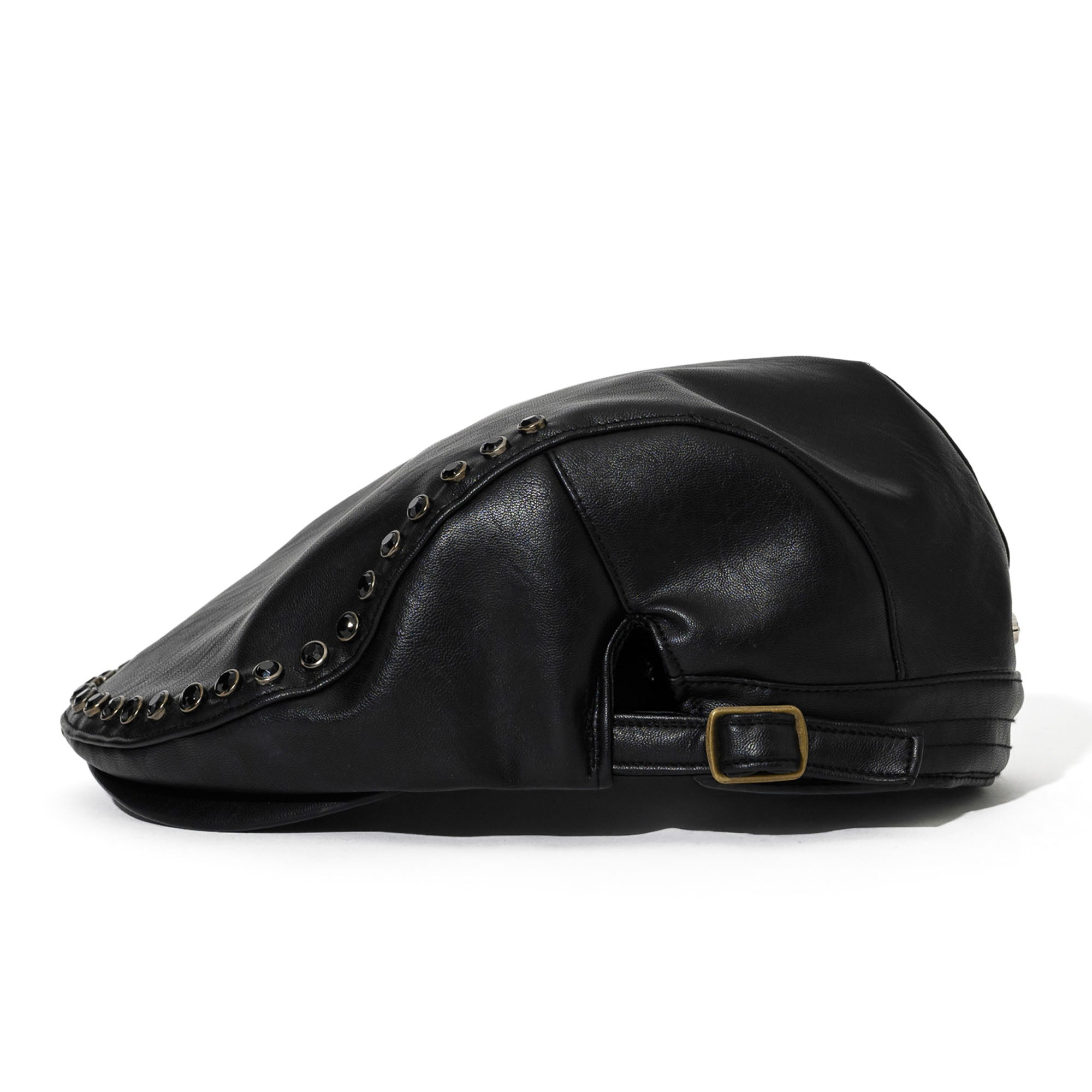 Jeweled Hunting Cap Black Leather